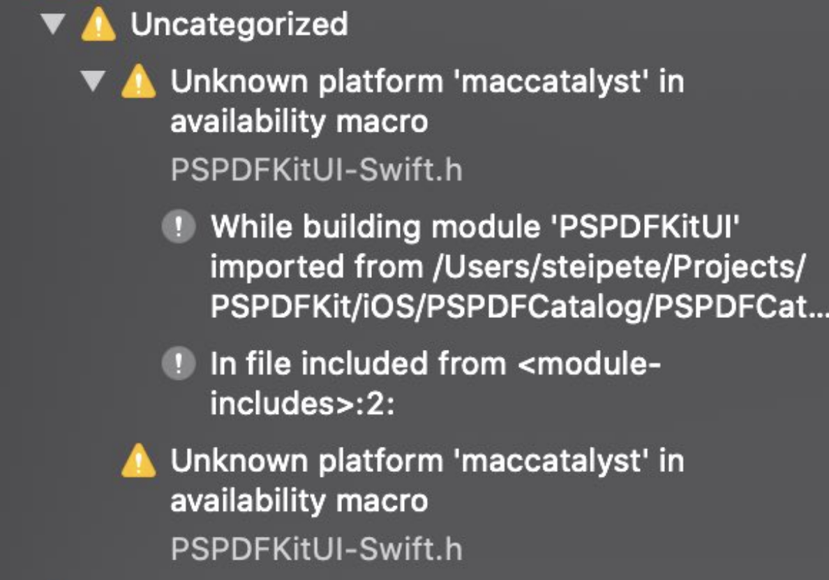 We expose some internal Swift classes to Objective-C that are only available in newer versions of the OS. Pointer library methods have been added to Catalyst, and we declare this availability for both iOS and Catalyst, but the trunk version doesn’t know about the maccatalyst platform.