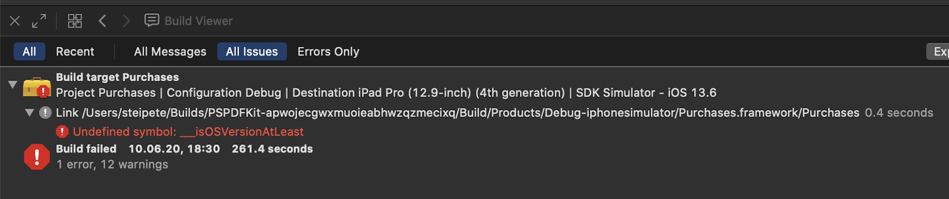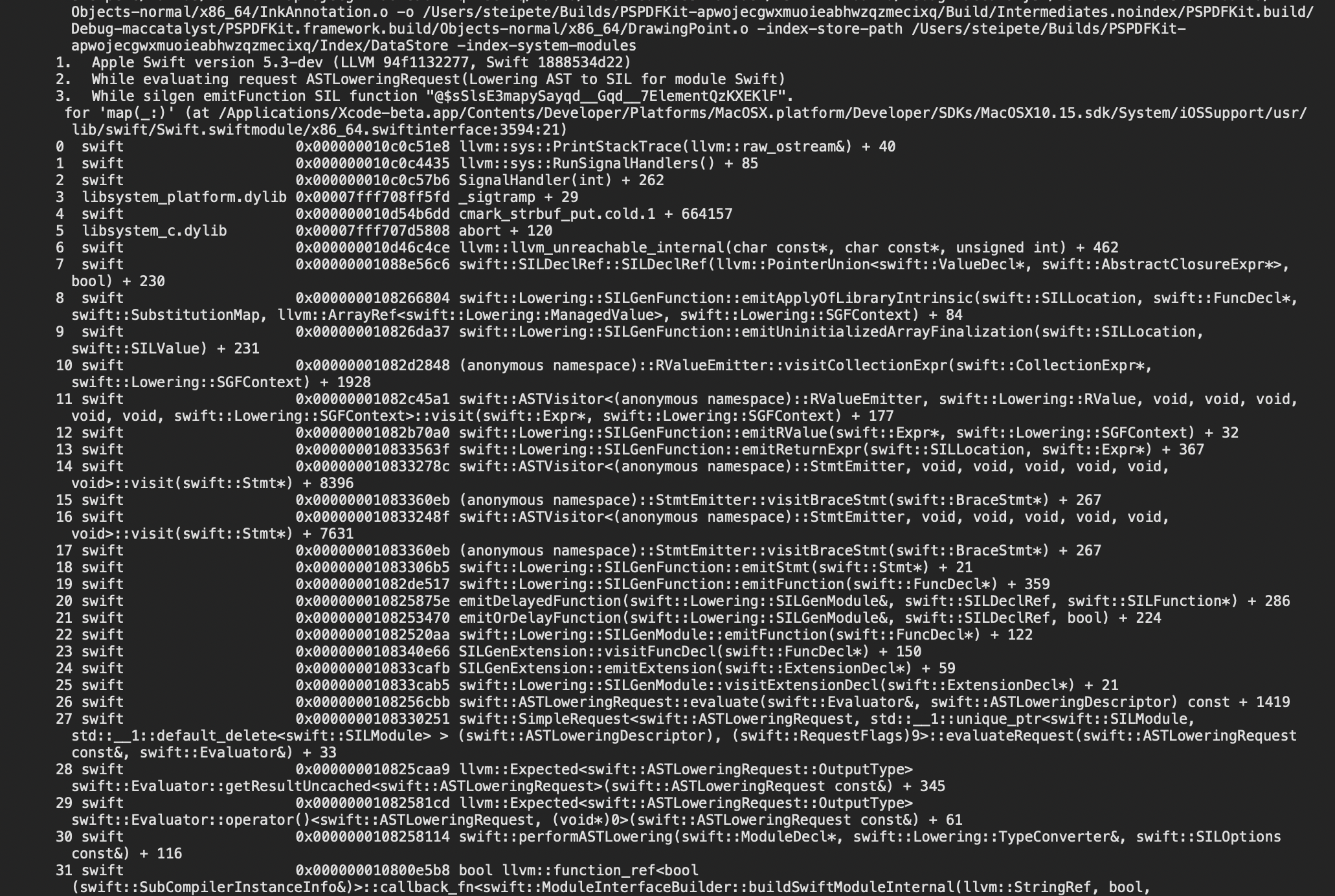 I recently started the adventure of building PSPDFKit with the Swift trunk development snapshot. I did this both in order to verify a fix for the SR-12933 LLDB debugging issue and to be better prepared for the Xcode 12 release at WWDC.
